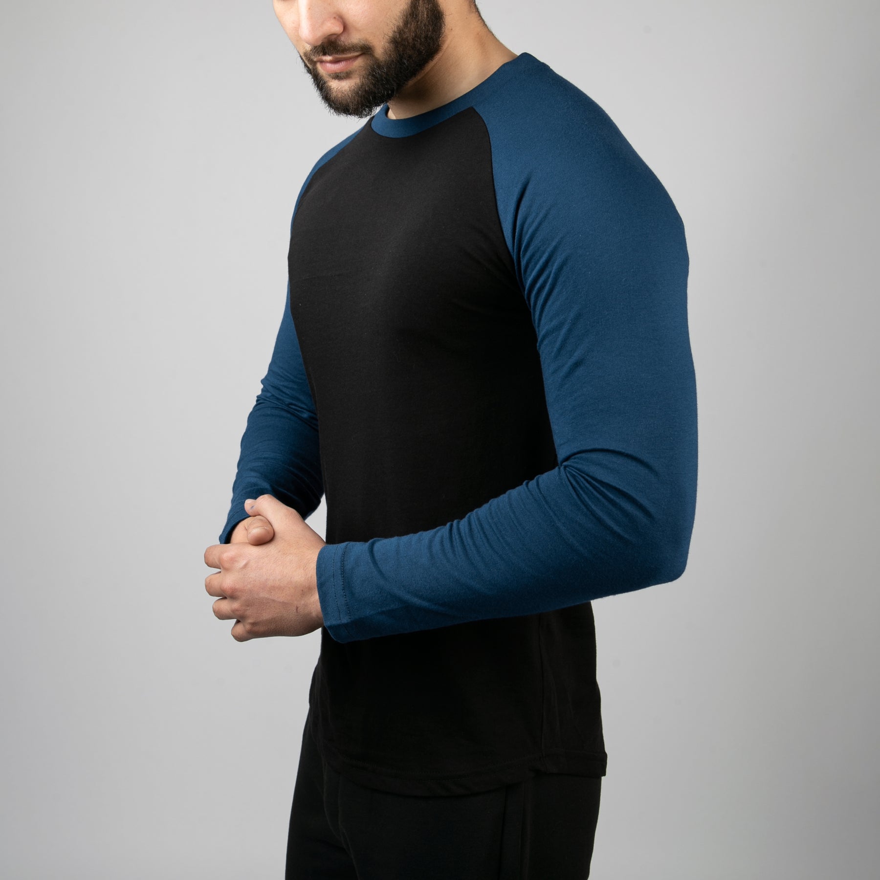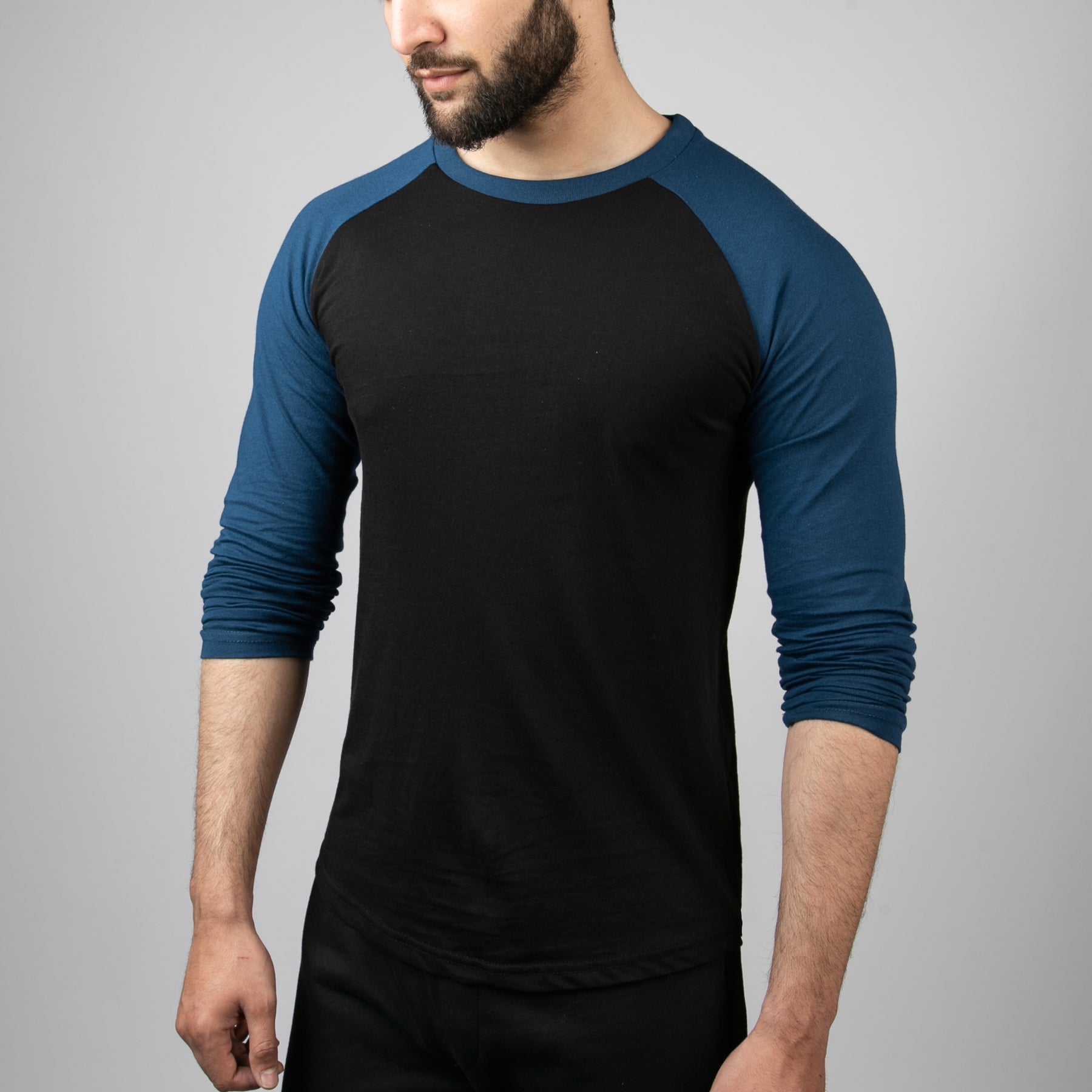 • Contrast raglan T-shirt sleeve and ribbed neck binding