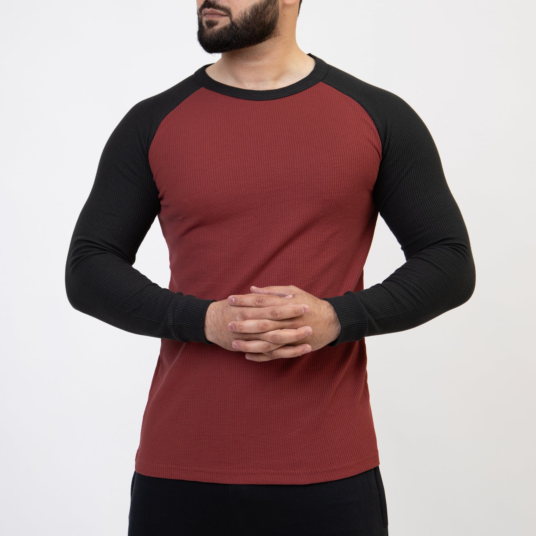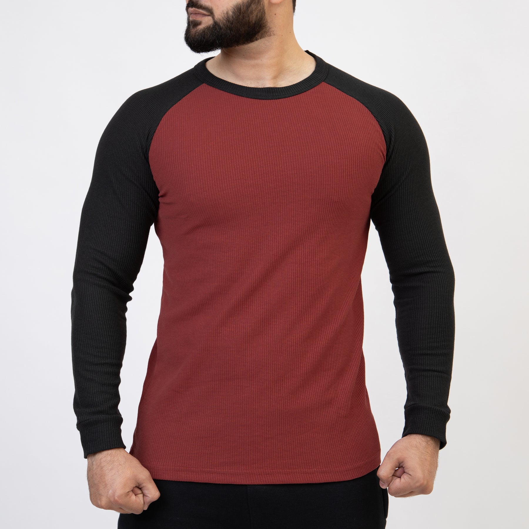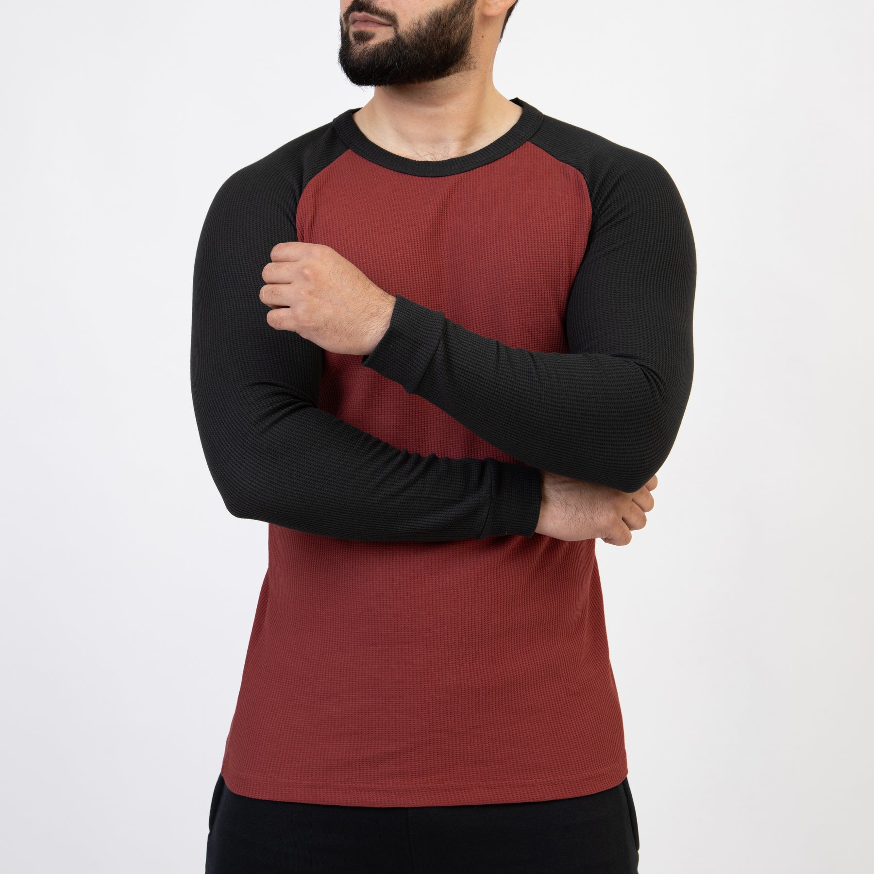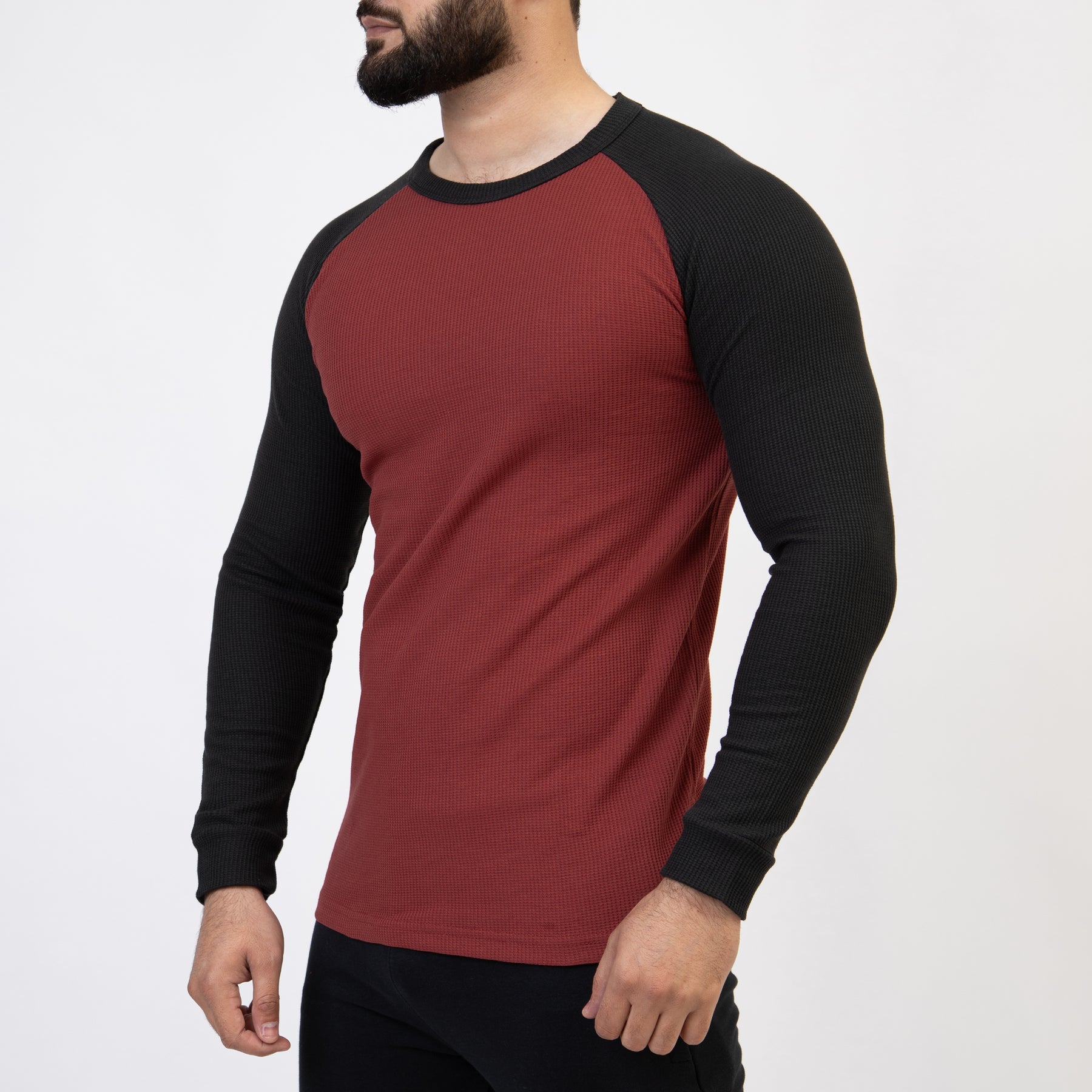 • Contrast raglan T-shirt sleeve and ribbed neck binding
