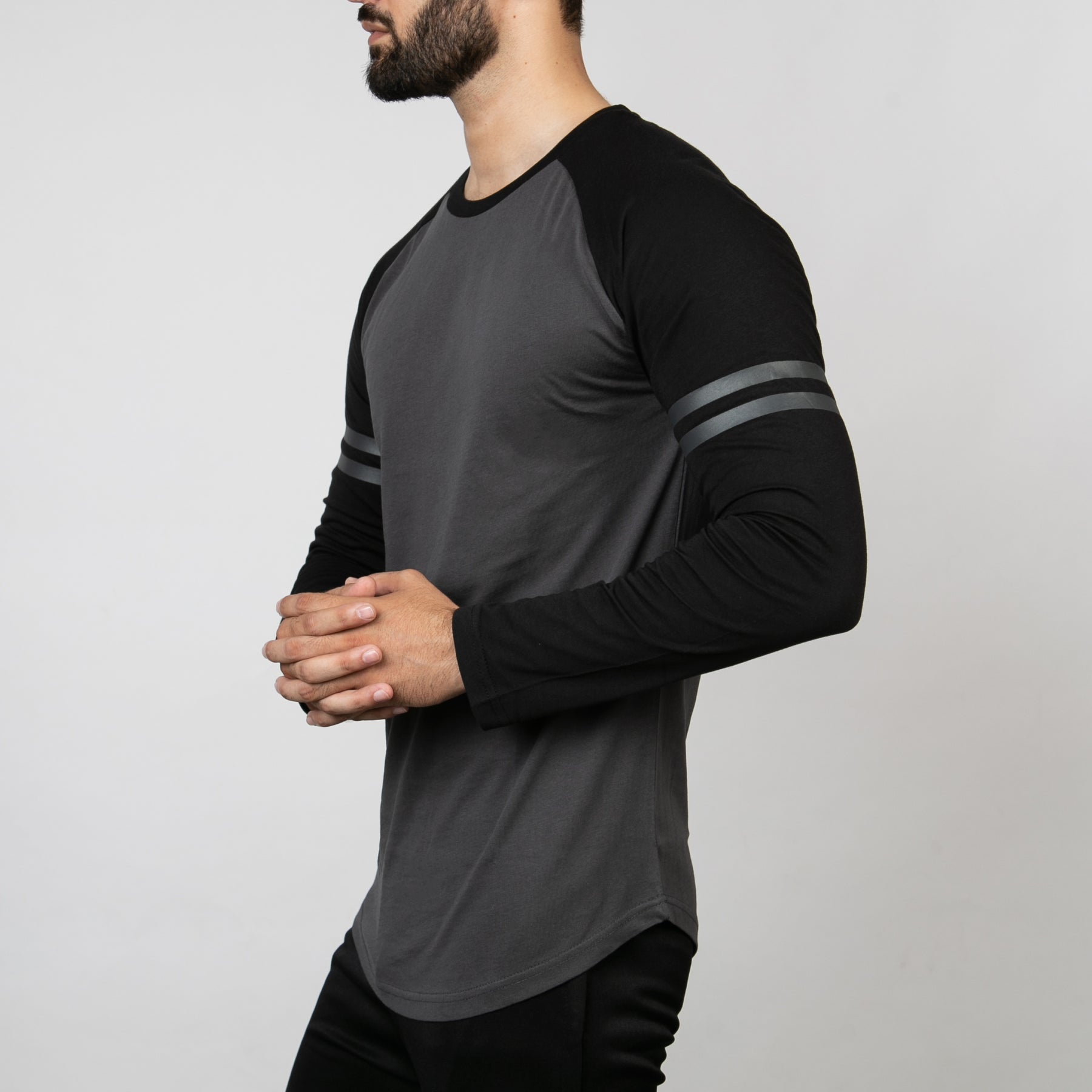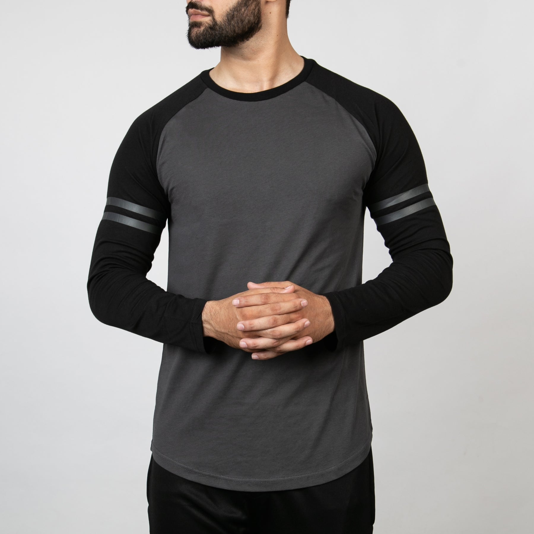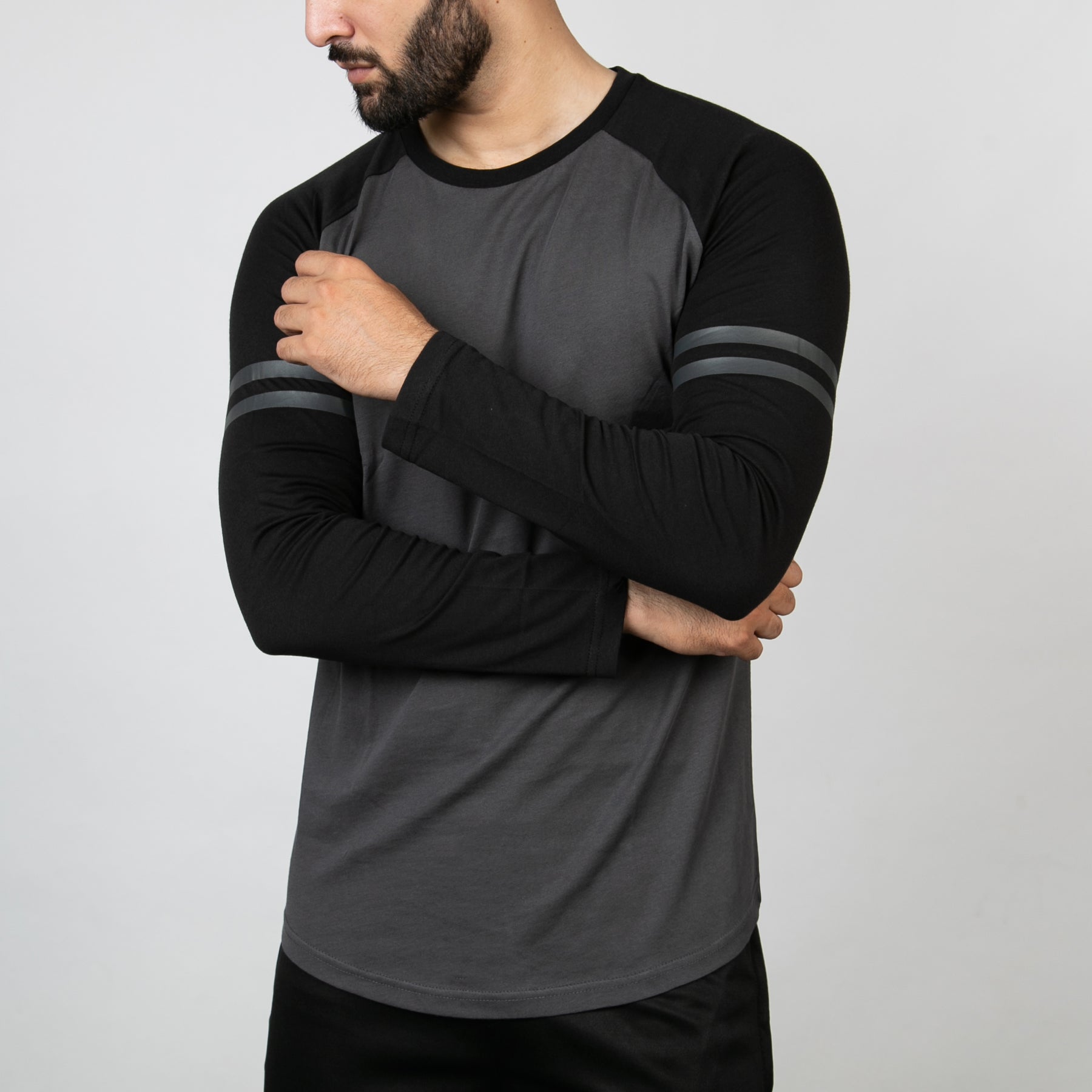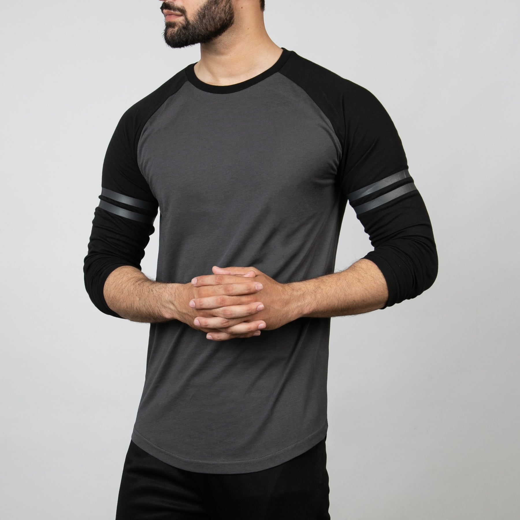 • Contrast raglan T-shirt sleeve and ribbed neck binding