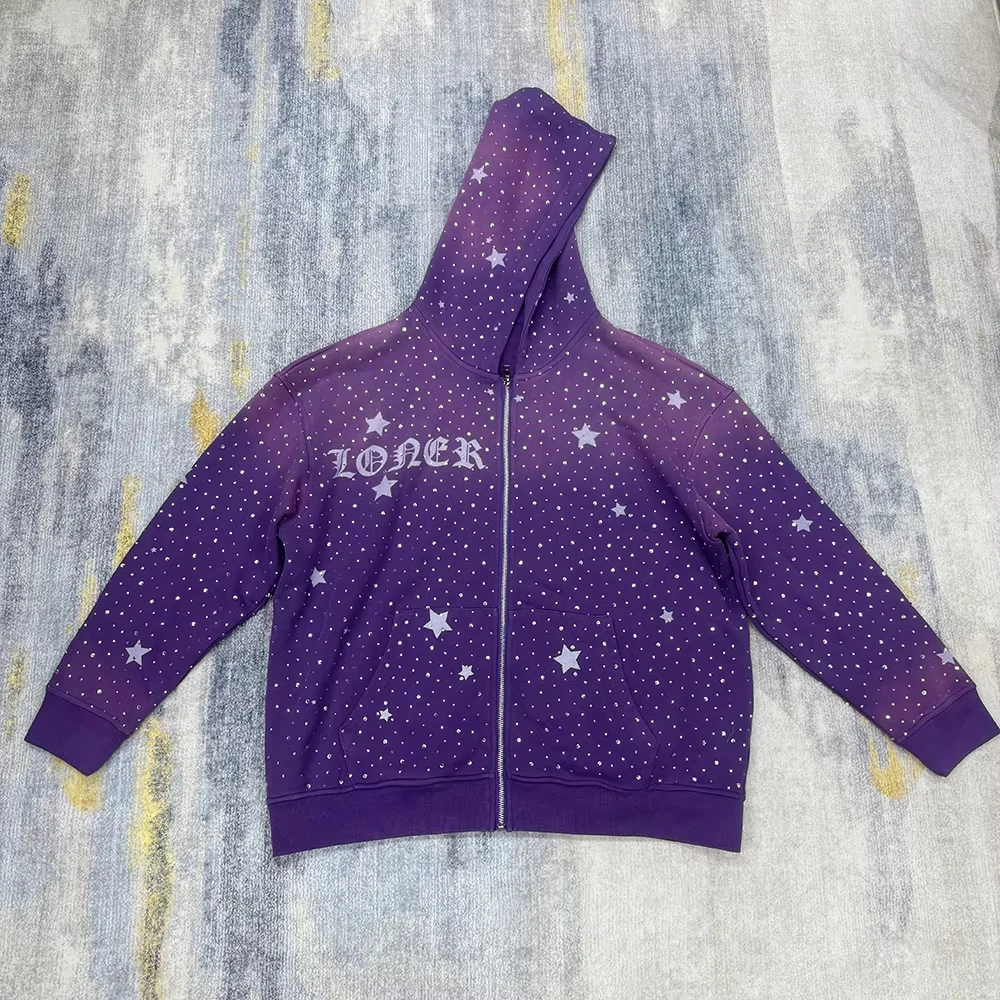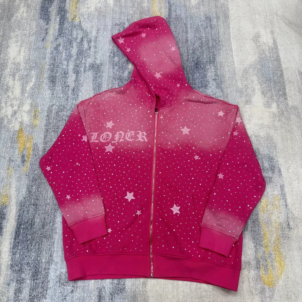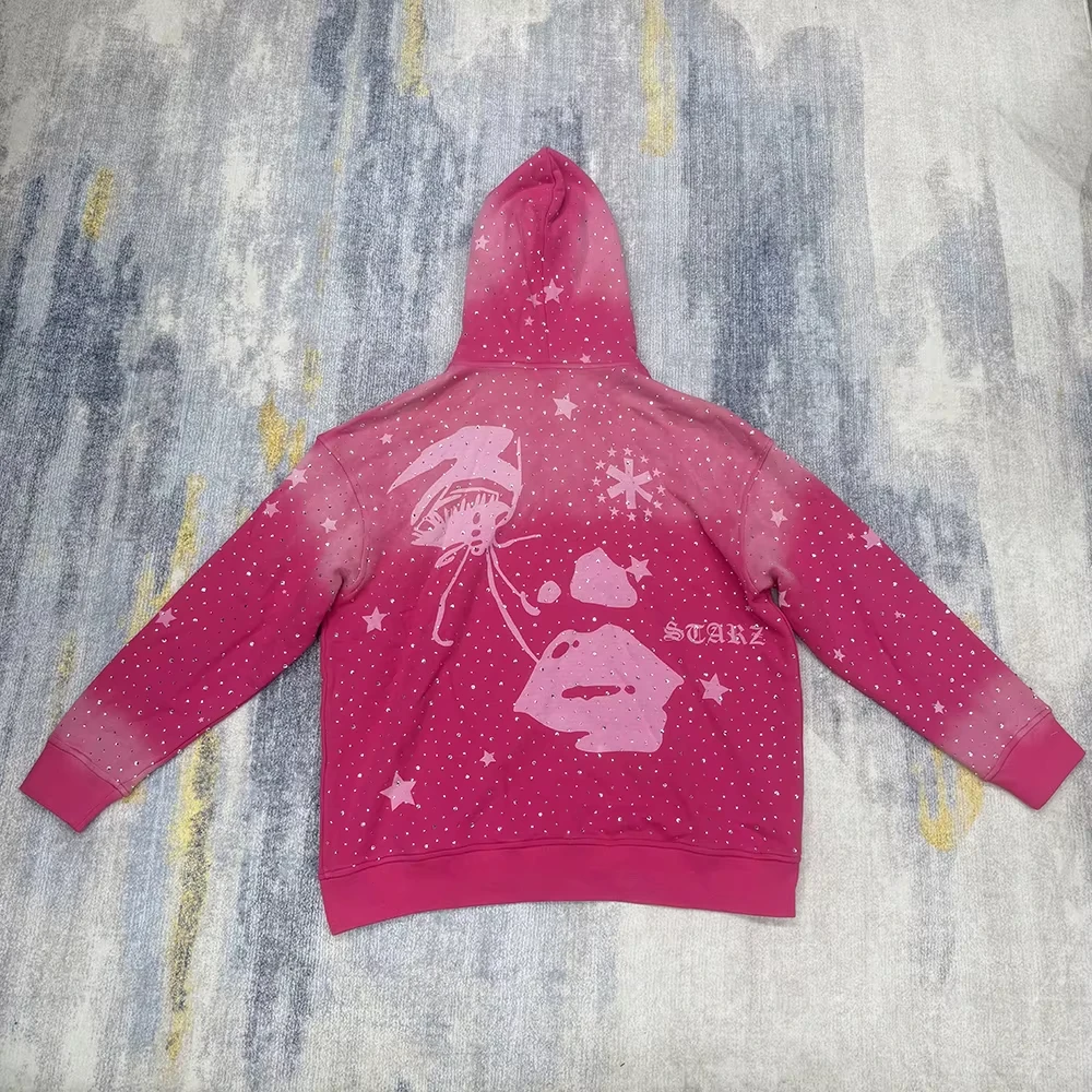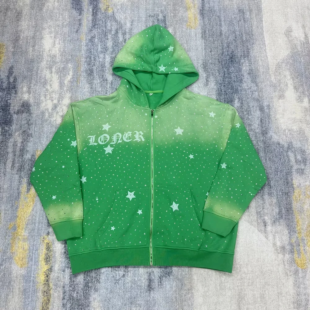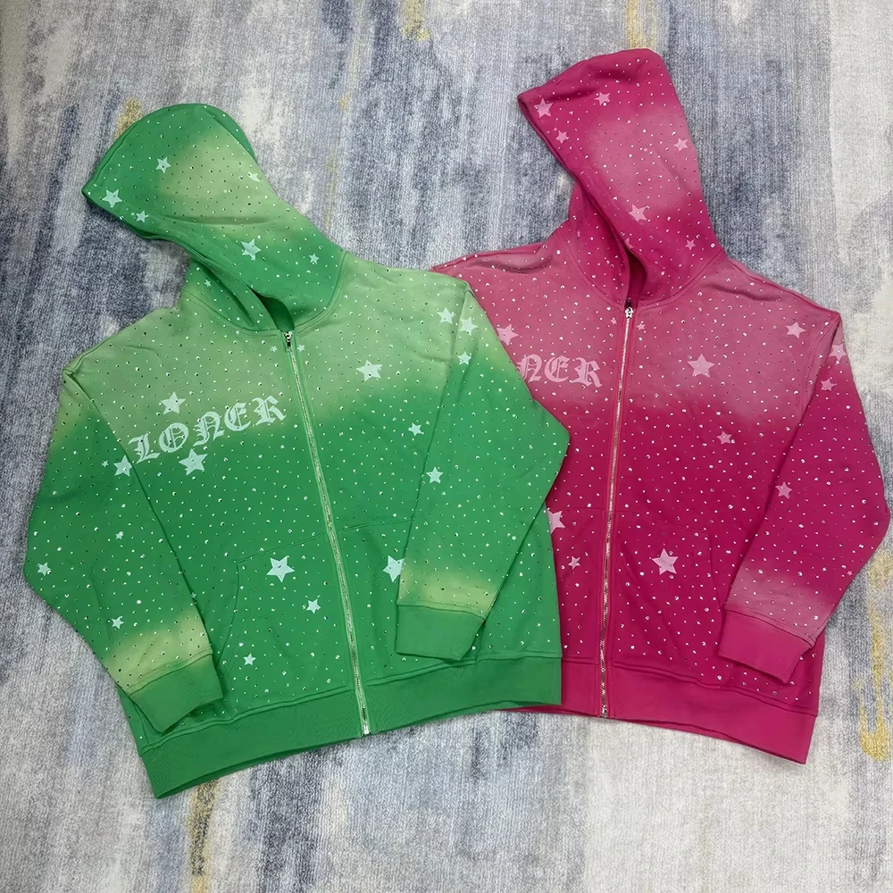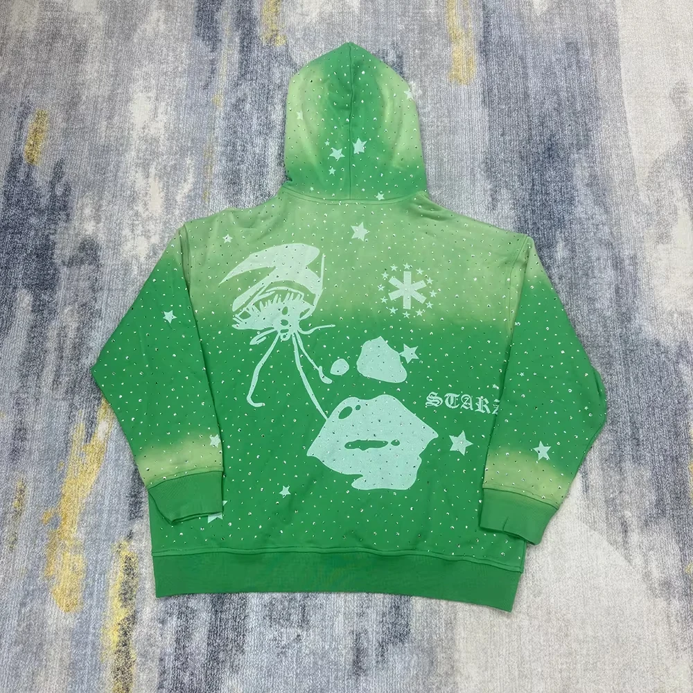 Custom Acid Wash Sun Faded Rhinestone DTG Printing Hoodies |