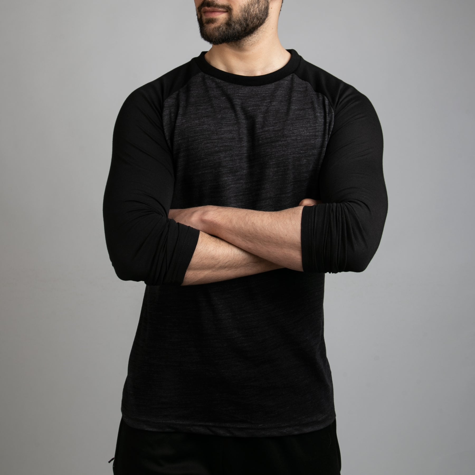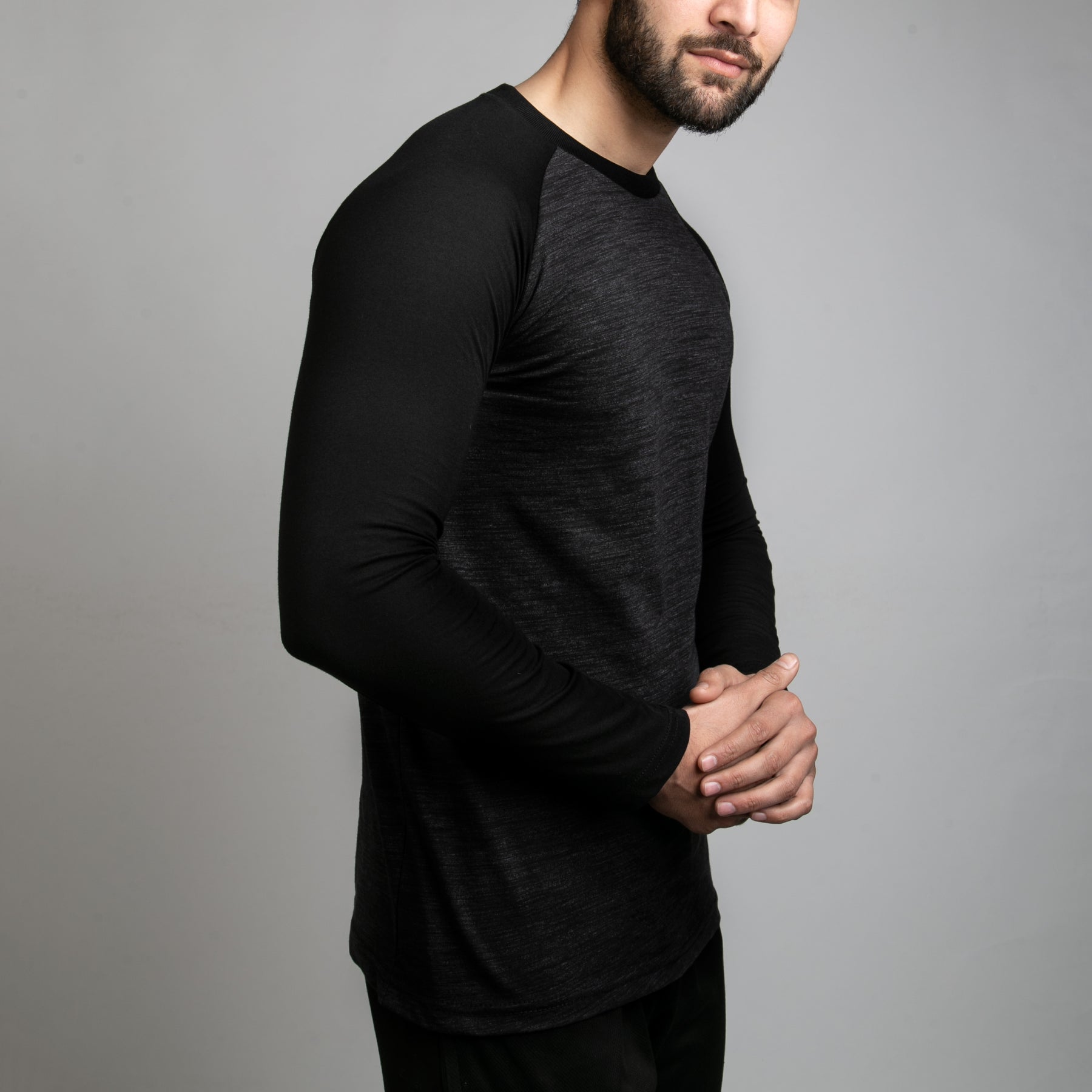 • Contrast raglan T-shirt sleeve and ribbed neck binding