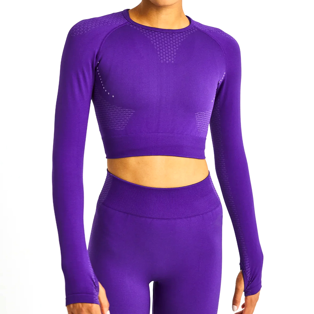 O Neck Collar Crop Compression T-shirt Quick Dry Gym Top Fitness Yoga Crop Wholesale Long Sleeve