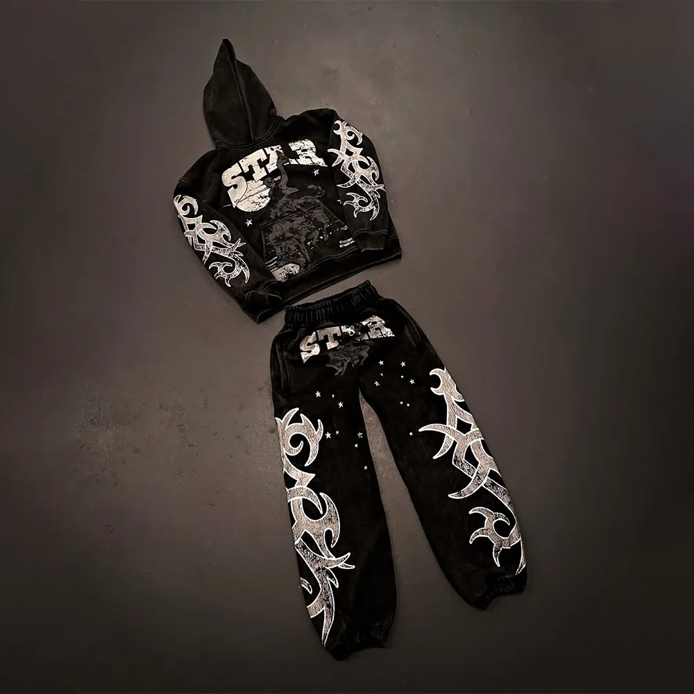 Custom high quality graphic Sweatpants And Hoodie Set |