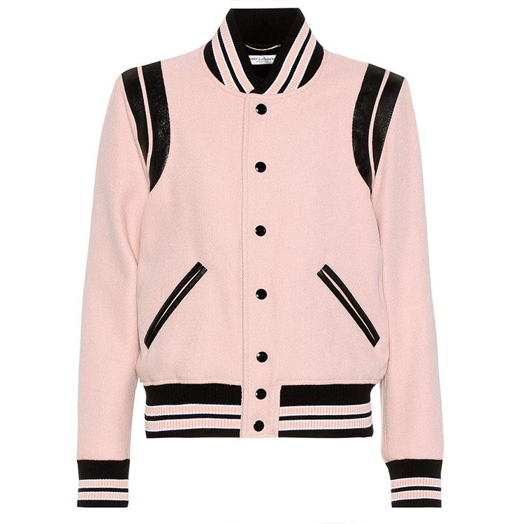 Custom logo varsity women jacket classic teddy wool-blend girls prink bomber letterman jacket women