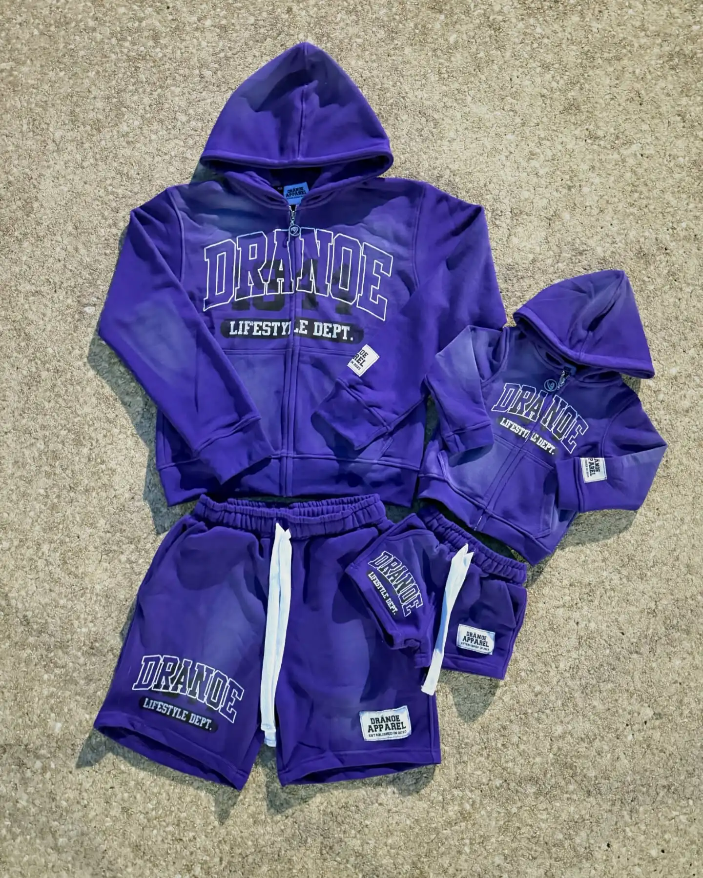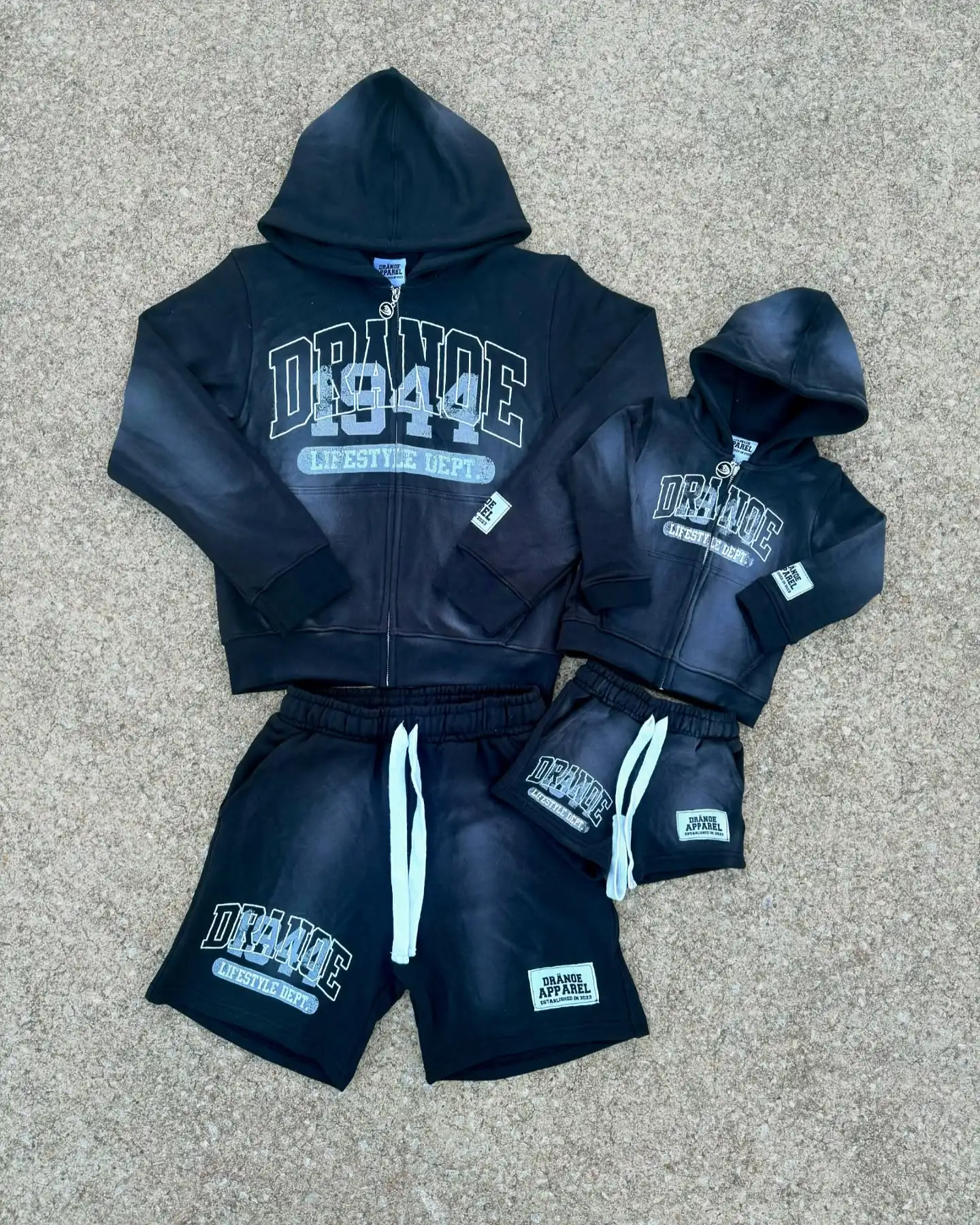Custom Regular Fit Top Acid Washed Vintage Zip up French Terry Zip up Hoodie Men Tracksuits Jogging Suit Hoodie and Shorts Set |