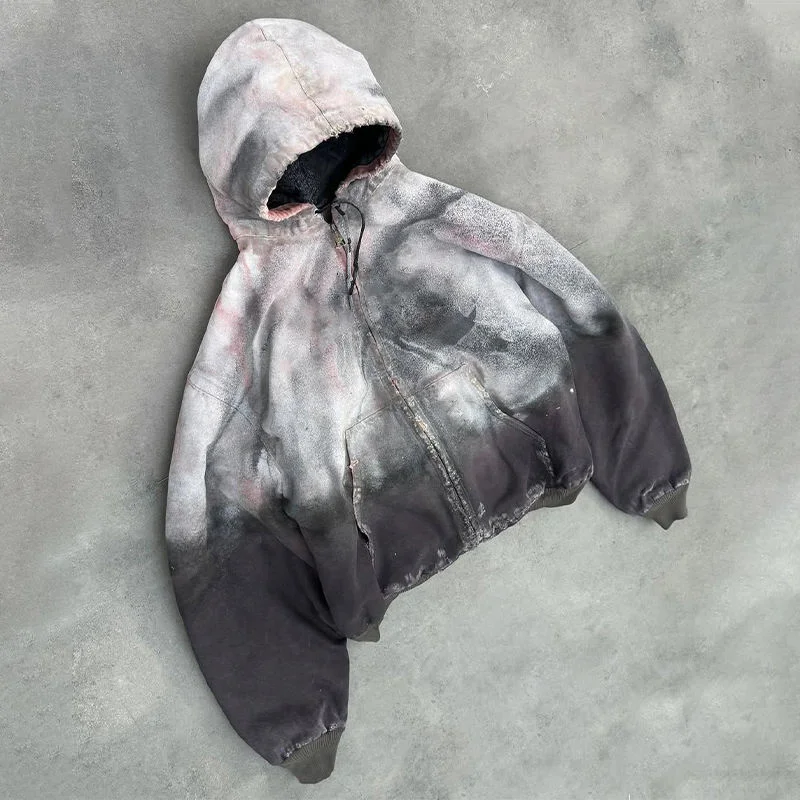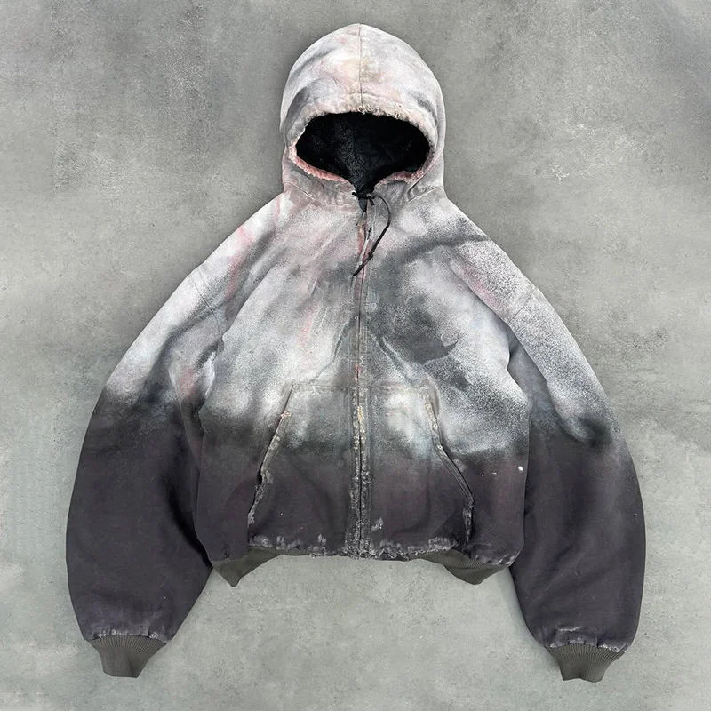 Customized Acid Washed Jacket Applique Embroidery Vintage Techwear Puffer Down Quilted Cotton Padded Jacket Bomber Jacket Men |