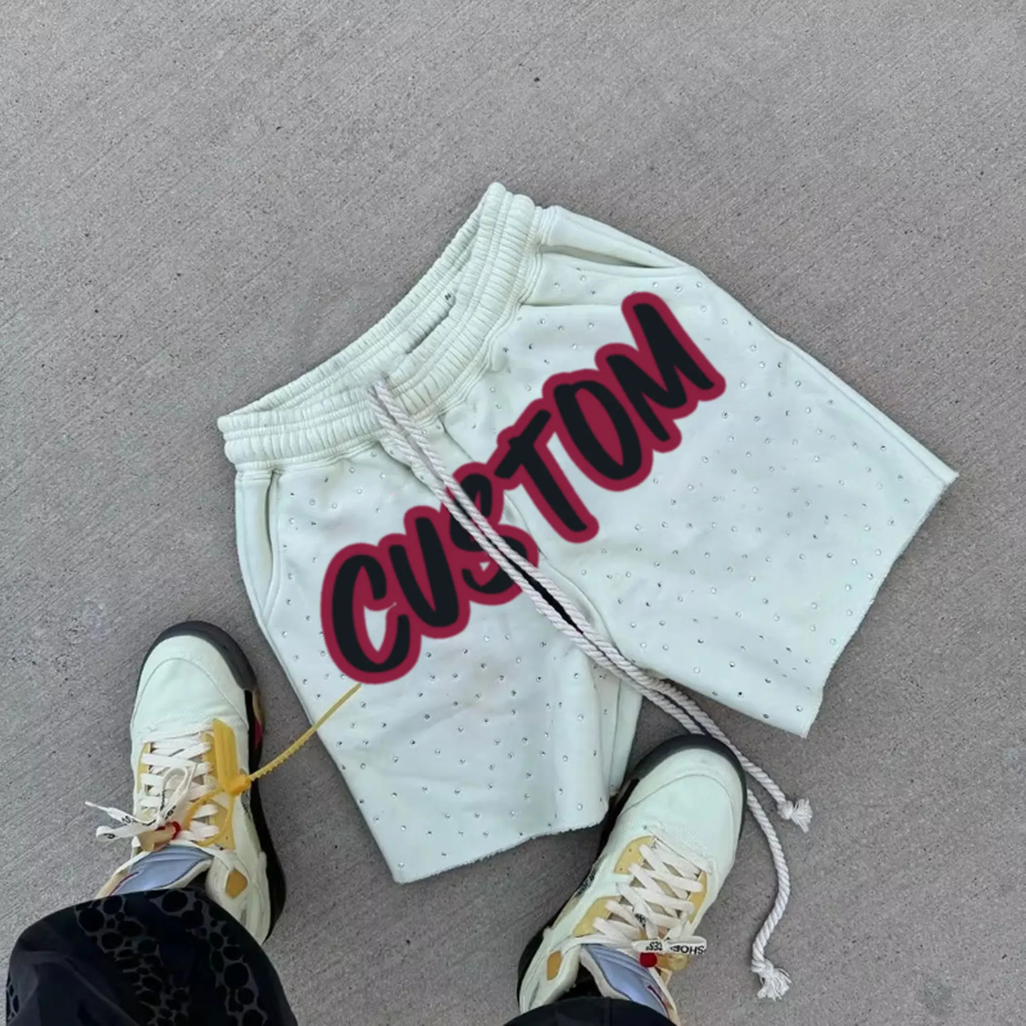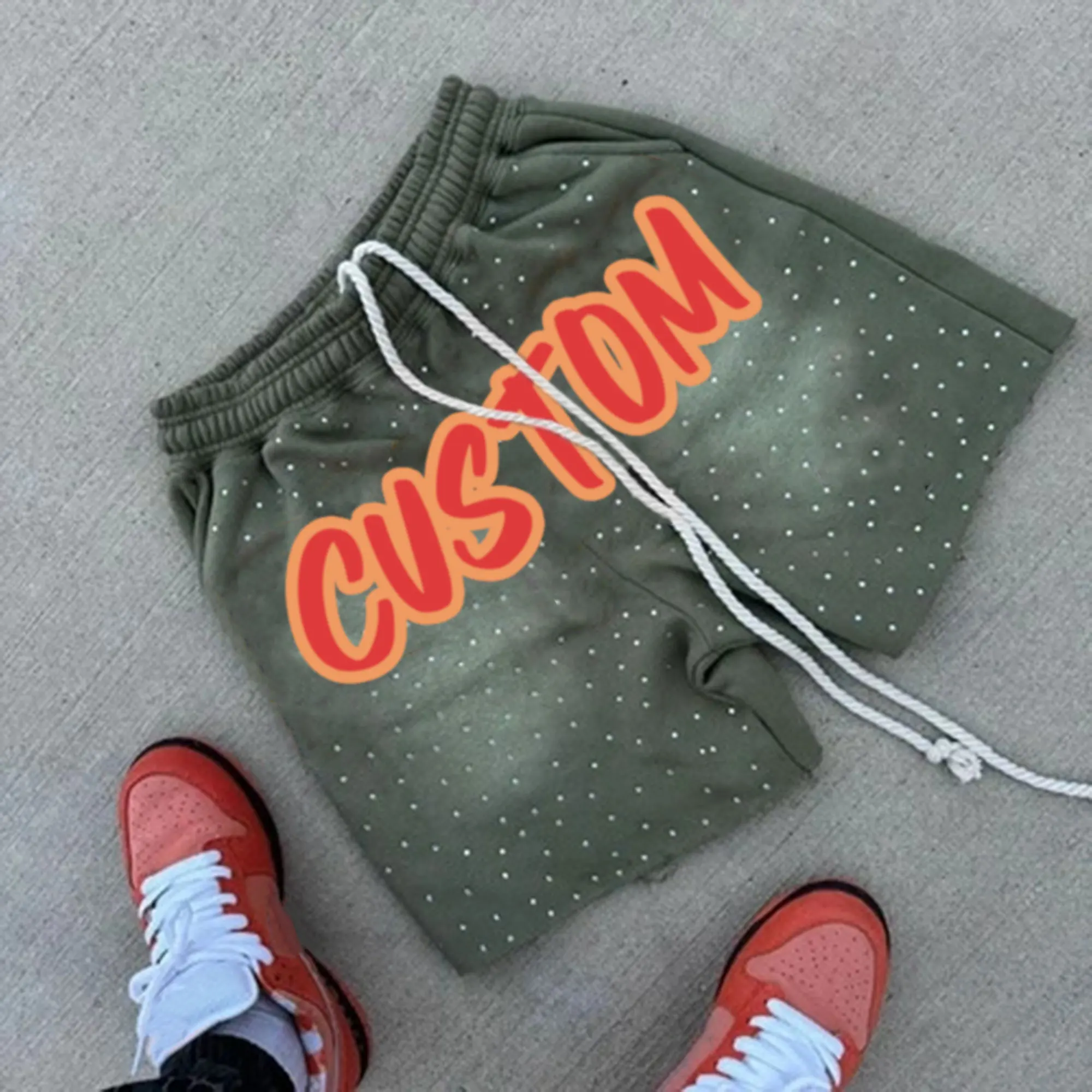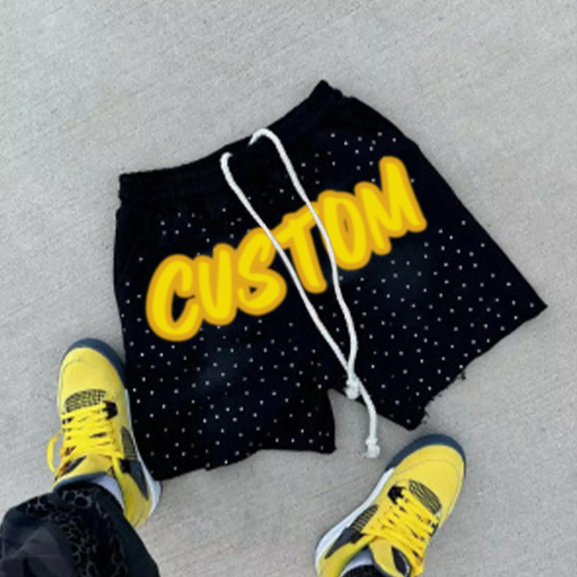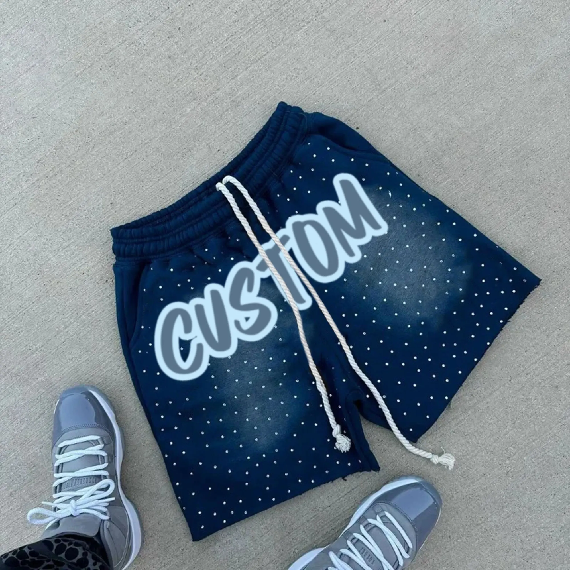 Summer Distressed Washed Vintage Logo Mens Oversized Blank Black Sweat Acid Wash Streetwear Cotton Custom Rhinestone Men Shorts |
