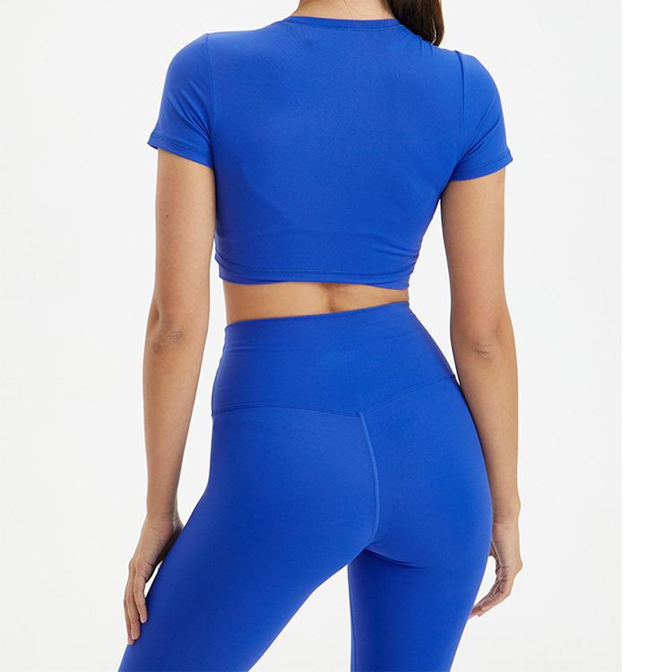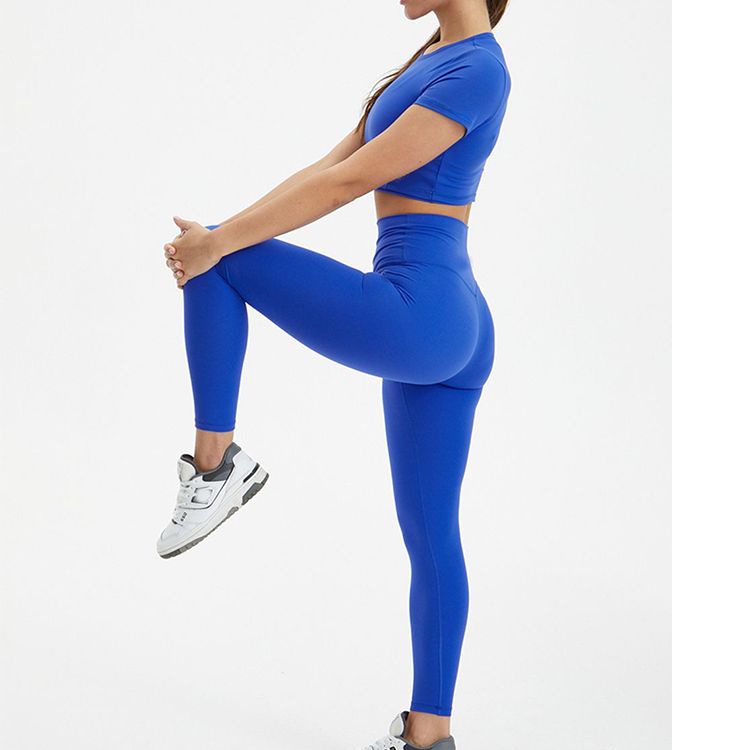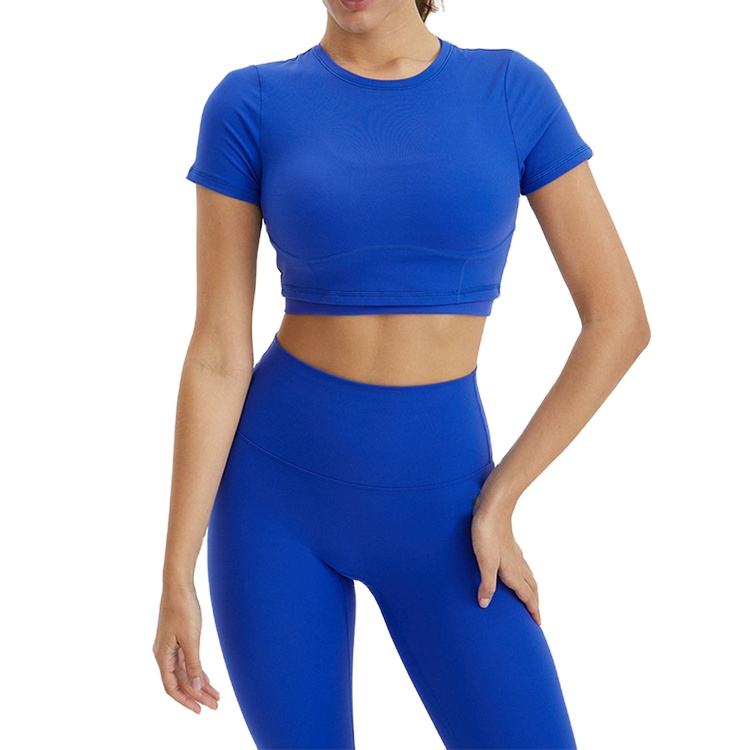 High quality 2 pieces sportswear fitness clothes women nylon crop top t-shirts leggings gym sets