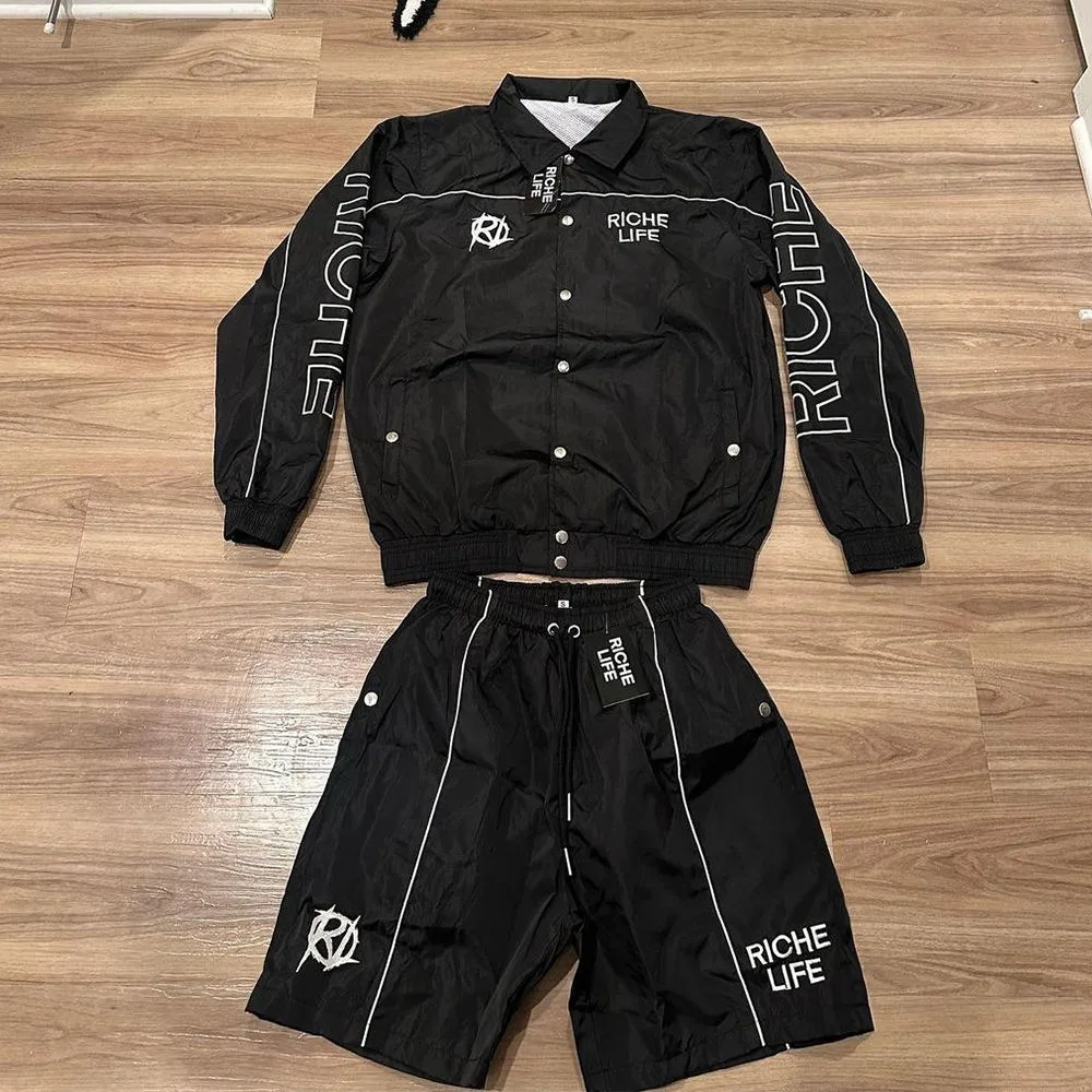 High Quality Summer Mens Clothing Jogging Sportswear Suit Sets Tracksuits Nylon Wind Breaker Sets Windbreaker Short Set for Men |
