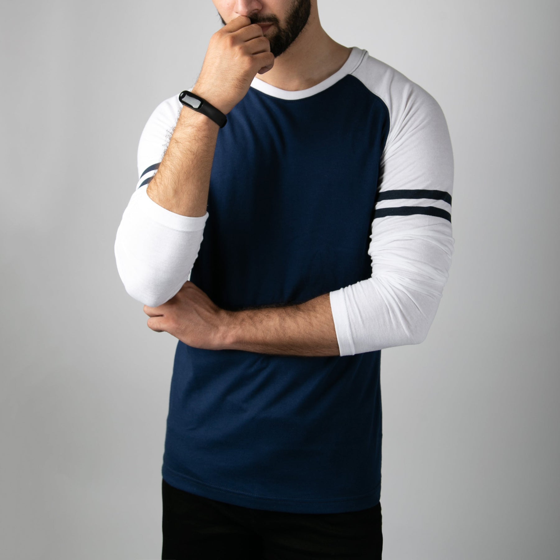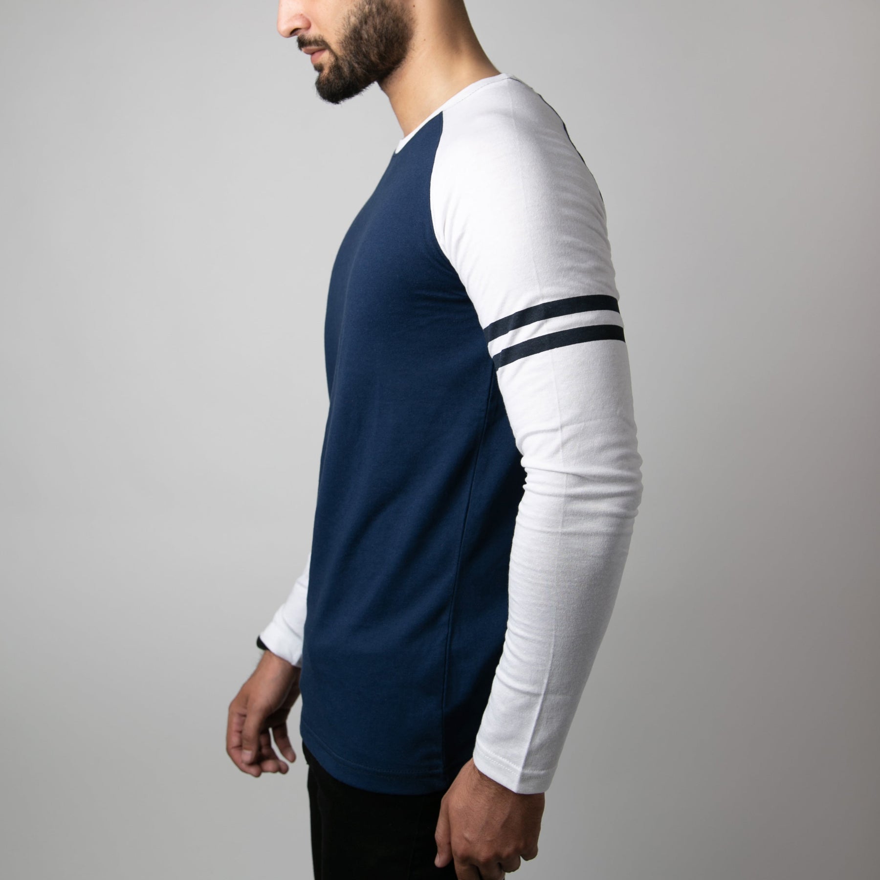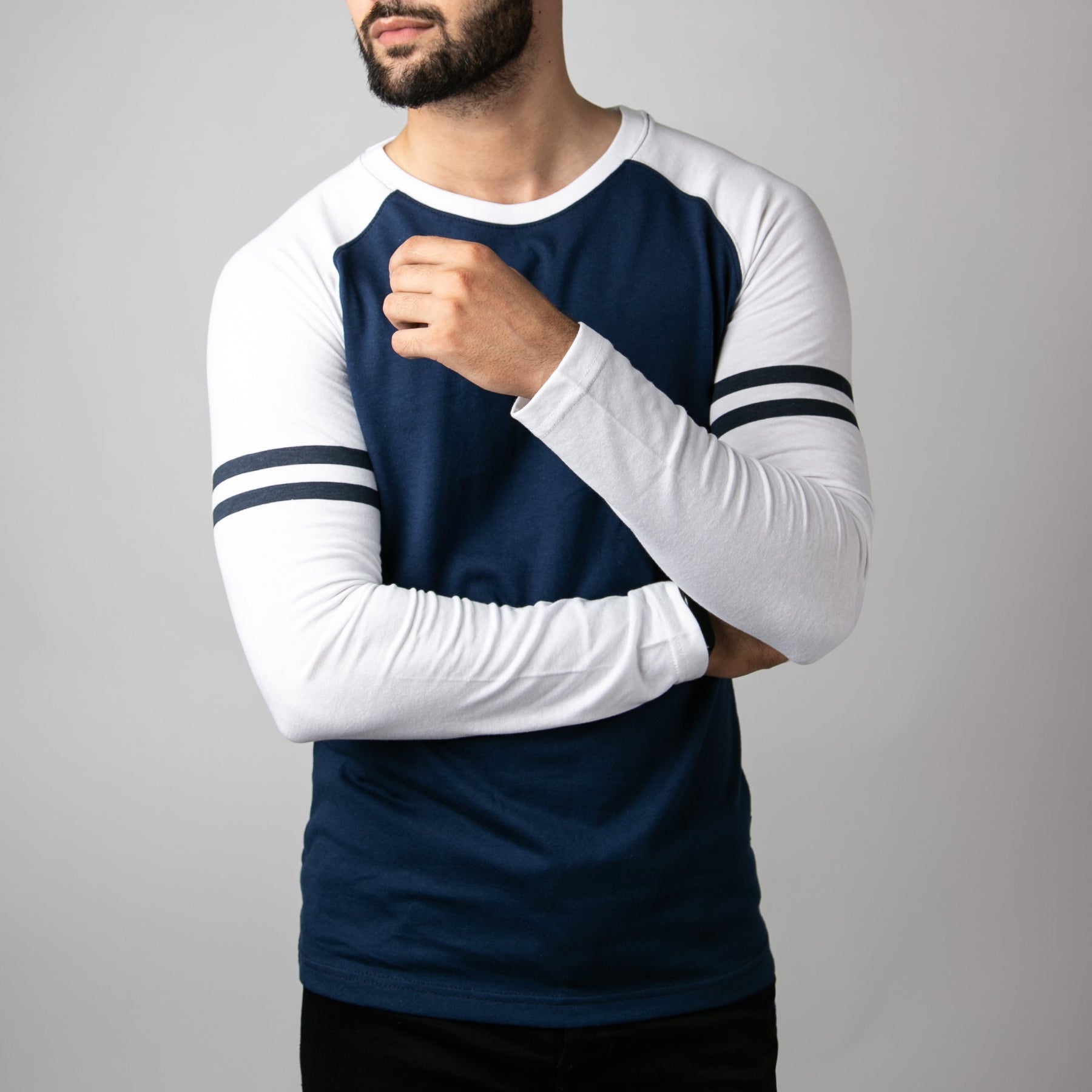 • Contrast raglan T-shirt sleeve and ribbed neck binding