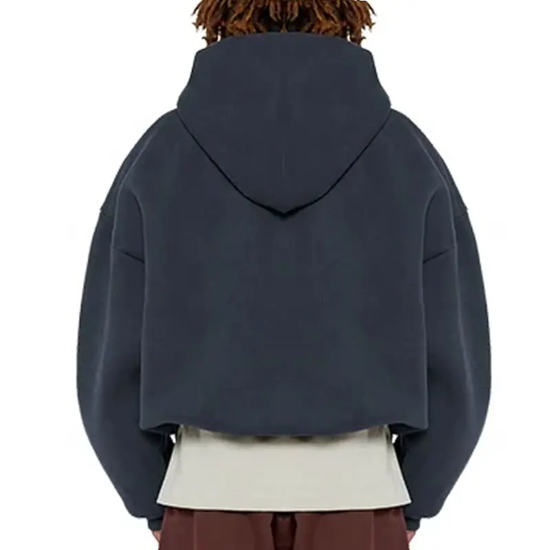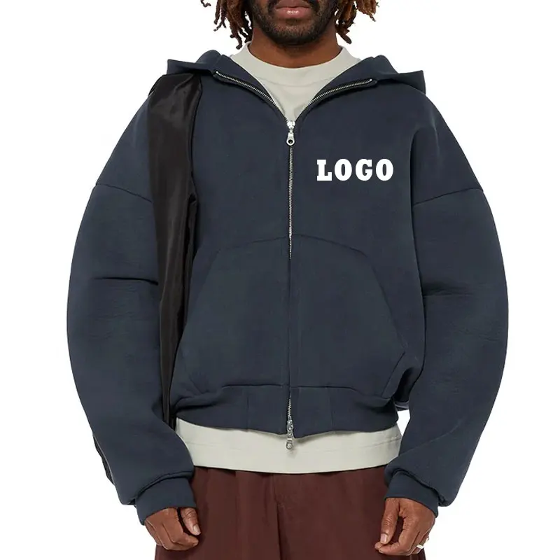 Boxy Double Zipper Hoodies Custom 100% Cotton Heavyweight Fleece Cropped Men Full Zip up Hoodie |