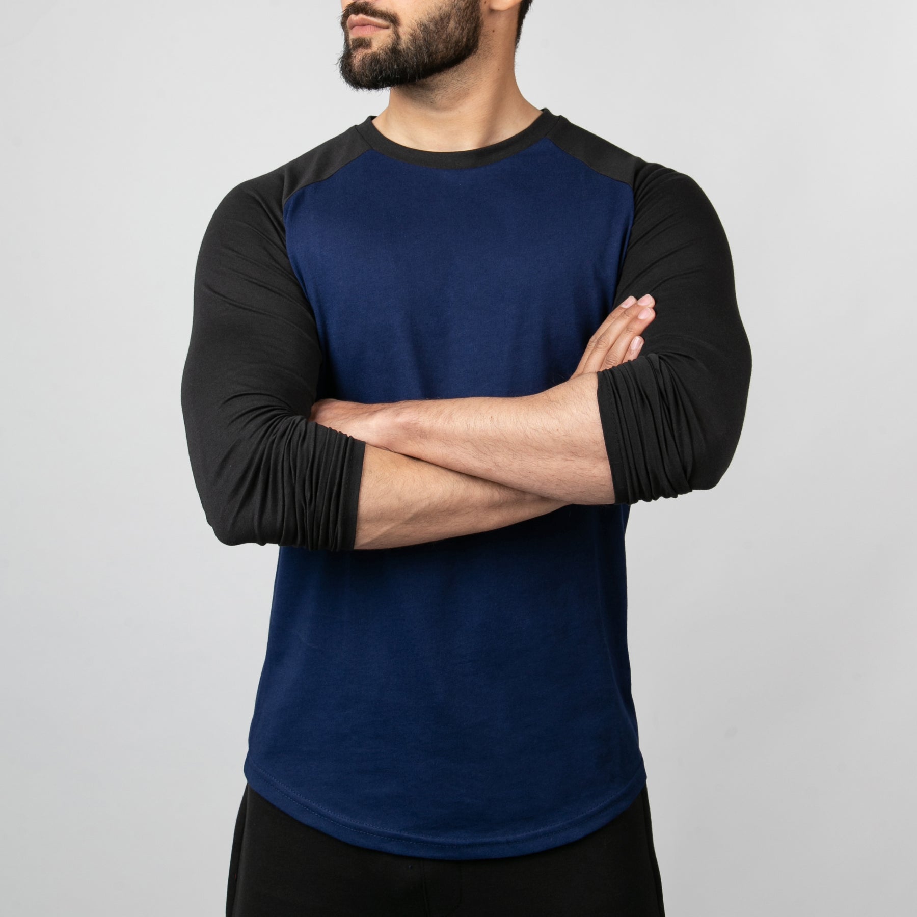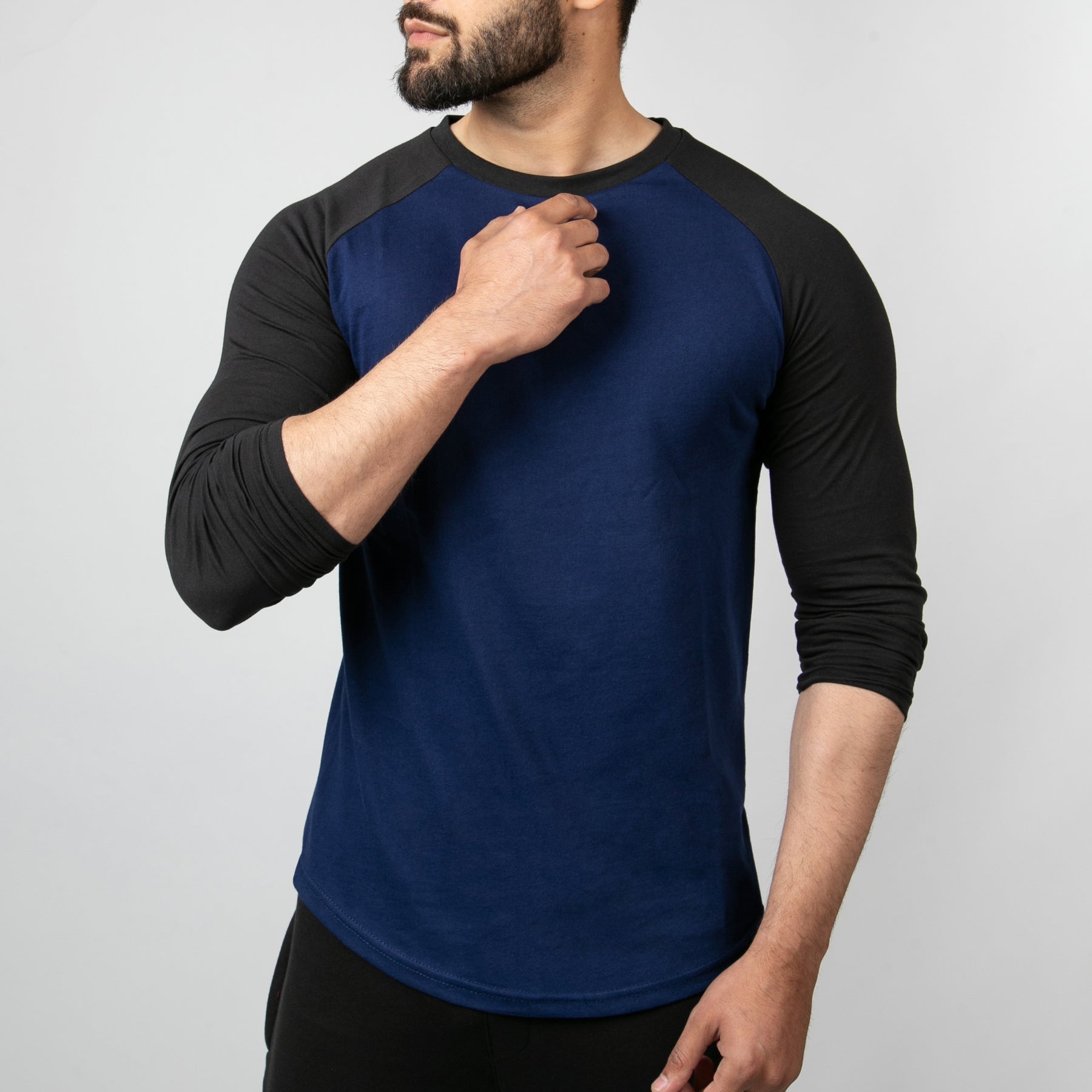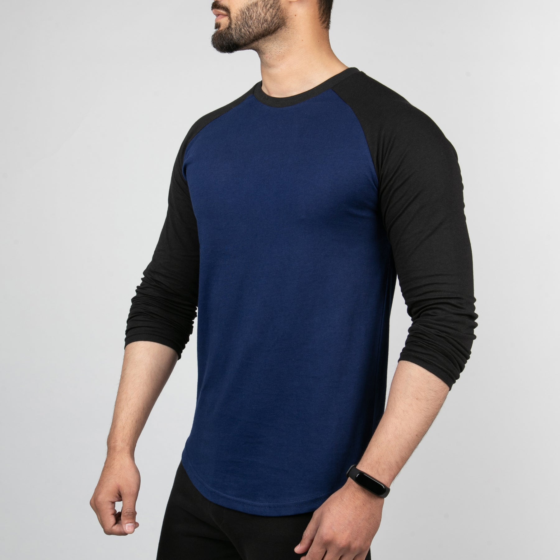 • Contrast raglan T-shirt sleeve and ribbed neck binding